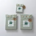 Drie verpakkingen van een complete Premium bamboe beddengoedset in de kleur Sage Green