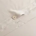 Detailfoto van een bamboe knoopsluiting van een bamboe dekbedovertrek in de kleur Soft Taupe (licht bruin)