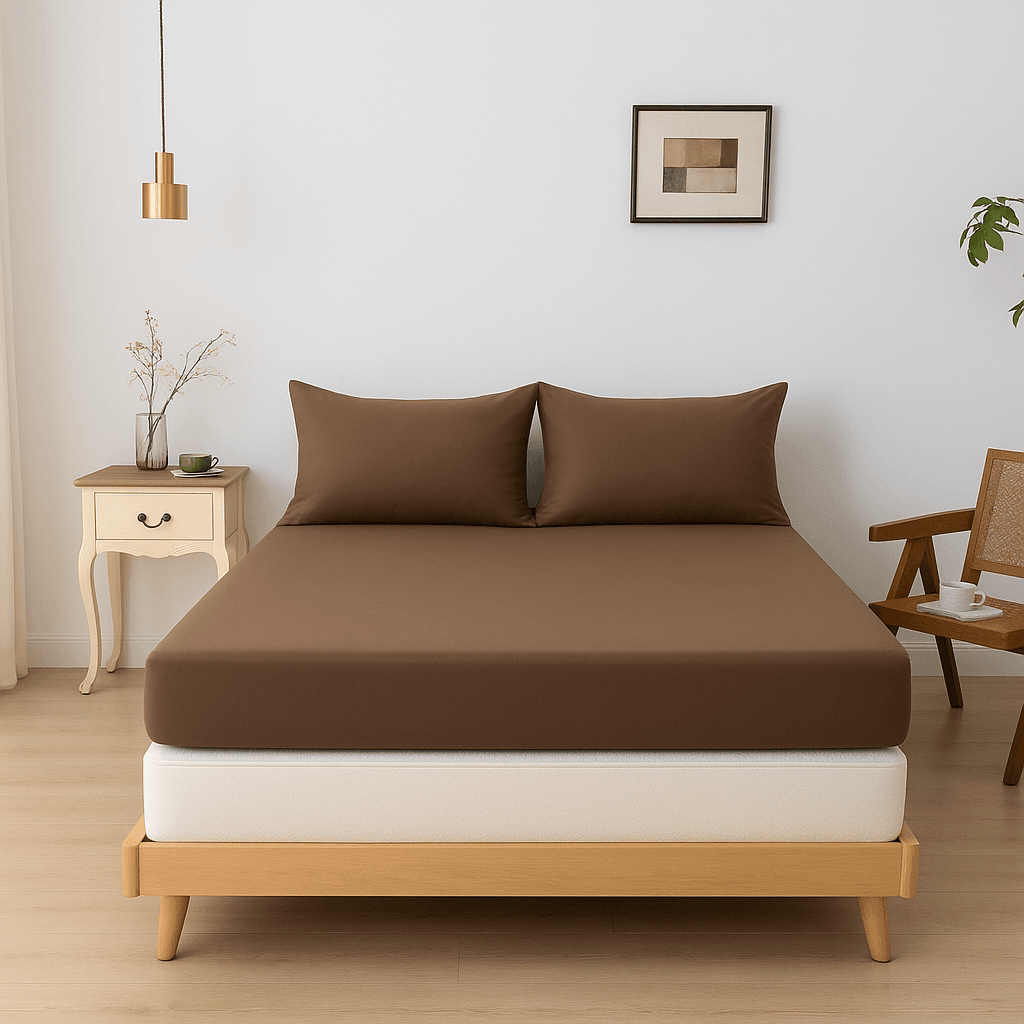 Ervaar ultiem slaapcomfort en voeg een vleugje stijlvolle luxe toe aan je slaapkamer met Coffee Brown bamboe hoeslakens van Boomba Bamboo..