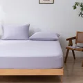 Verleihen Sie Ihrem Schlafzimmer Ruhe und Stil mit dem Premium Spannbettlaken aus 100 % natürlichem Bambusin der sanften Farbe Lavender Mist (Lavendelviolett). Das Gewebe aus feinen Tanboocel™ Bambusfasern mit einer Fadendichte von 400 TC fühlt sich seidig glatt an, bleibt angenehm kühl und sorgt das ganze Jahr über für ein ausgewogenes Schlafklima.